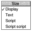 Text size is used on the baseline whenever you create an in-line expression by issuing the Expression command inside text. It is also the size used for fraction numerators and denominators in Display size.