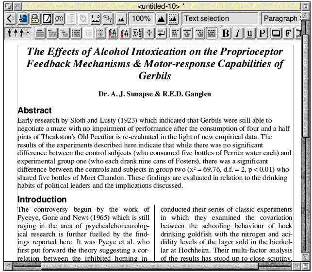 In addition all commands can be issued directly from the keyboard. View of an EasiWriter document showing the Button bar. Buttons also function as pull-down menus. Click Menu on a button and choose say, a Numbered list or a Bullet list.