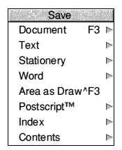 Save menu