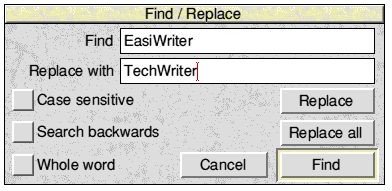 Replace same (Ctrl-F4) finds and replaces the next occurrence of the search string.