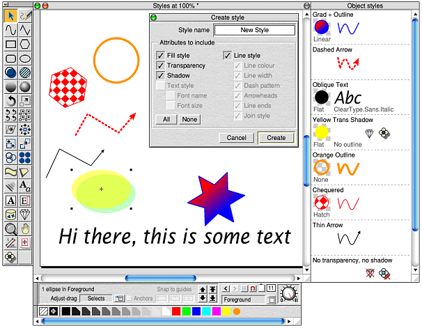 - Choose an attribute group (e.g., Line styles) or individual attributes (e.g., Shadow)
